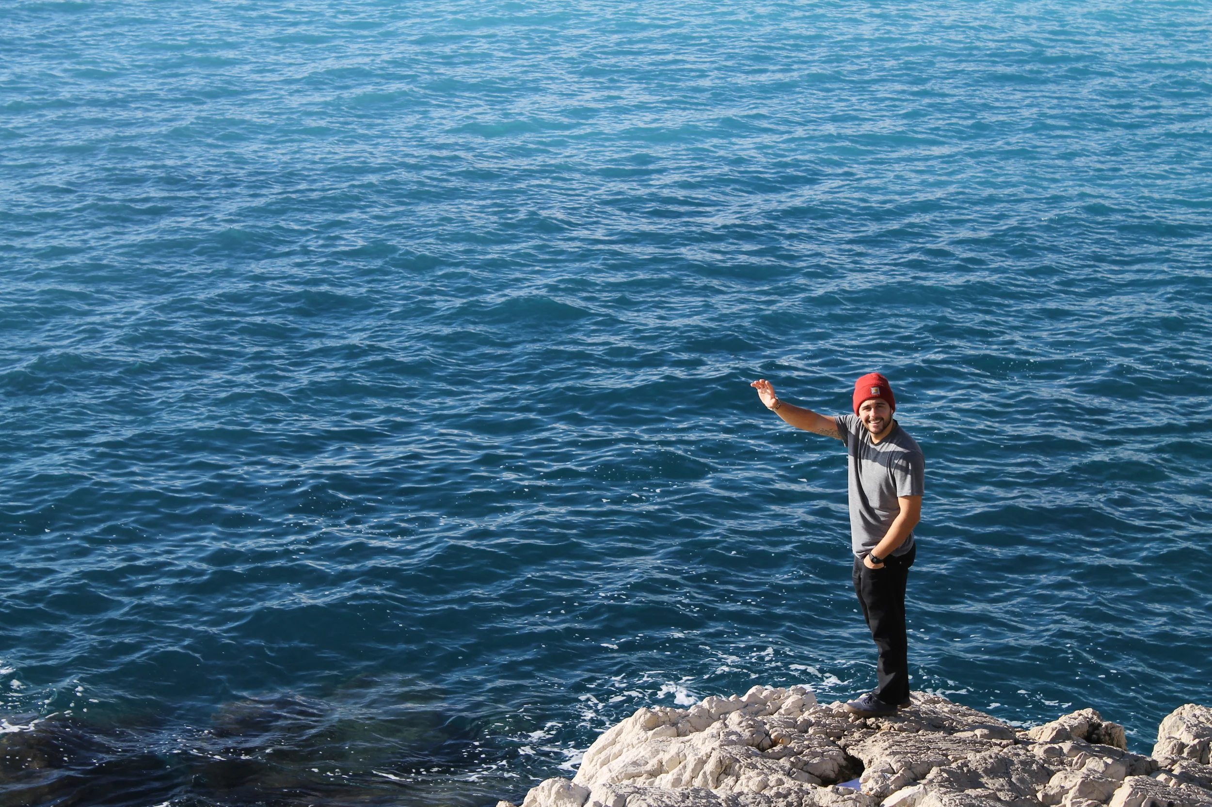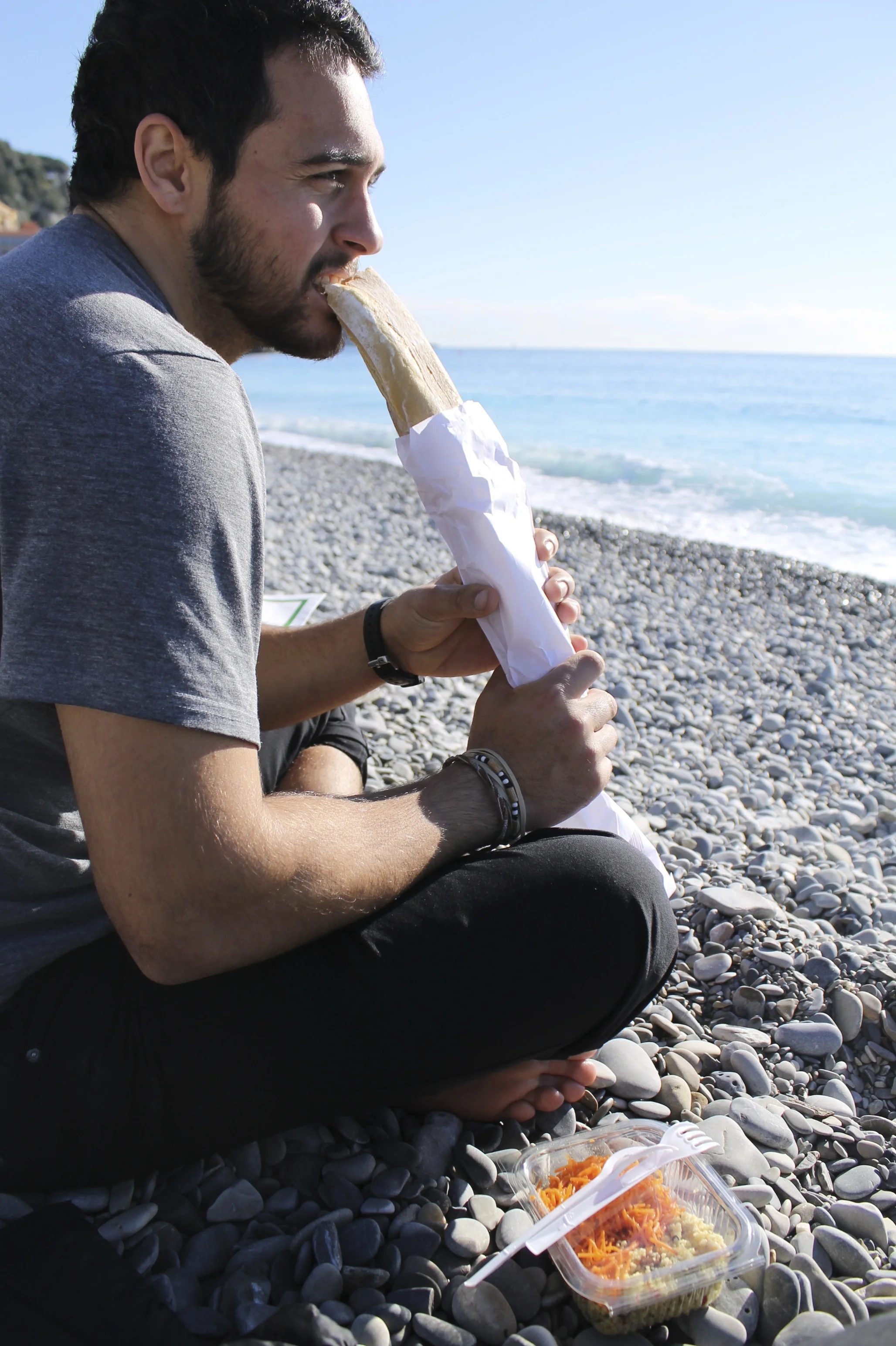 When we arrived in Nice we walked less than 3 minutes to our new AirBnB building. Olivia, our wonderfully French host greeted us and showed us up to our little studio for the next 4 nights. I love french accents. They sound so sophisticated. Olivia mapped out places to see, neighboring towns to visit, places to eat, and her favorite things to do. After she left we dropped our bags and left to see and touch the sea for the first time in almost 2 months. We walked out our front door located at the top of the main street, which is walking and trams only, with palms trees around us and a salty breeze in the air.