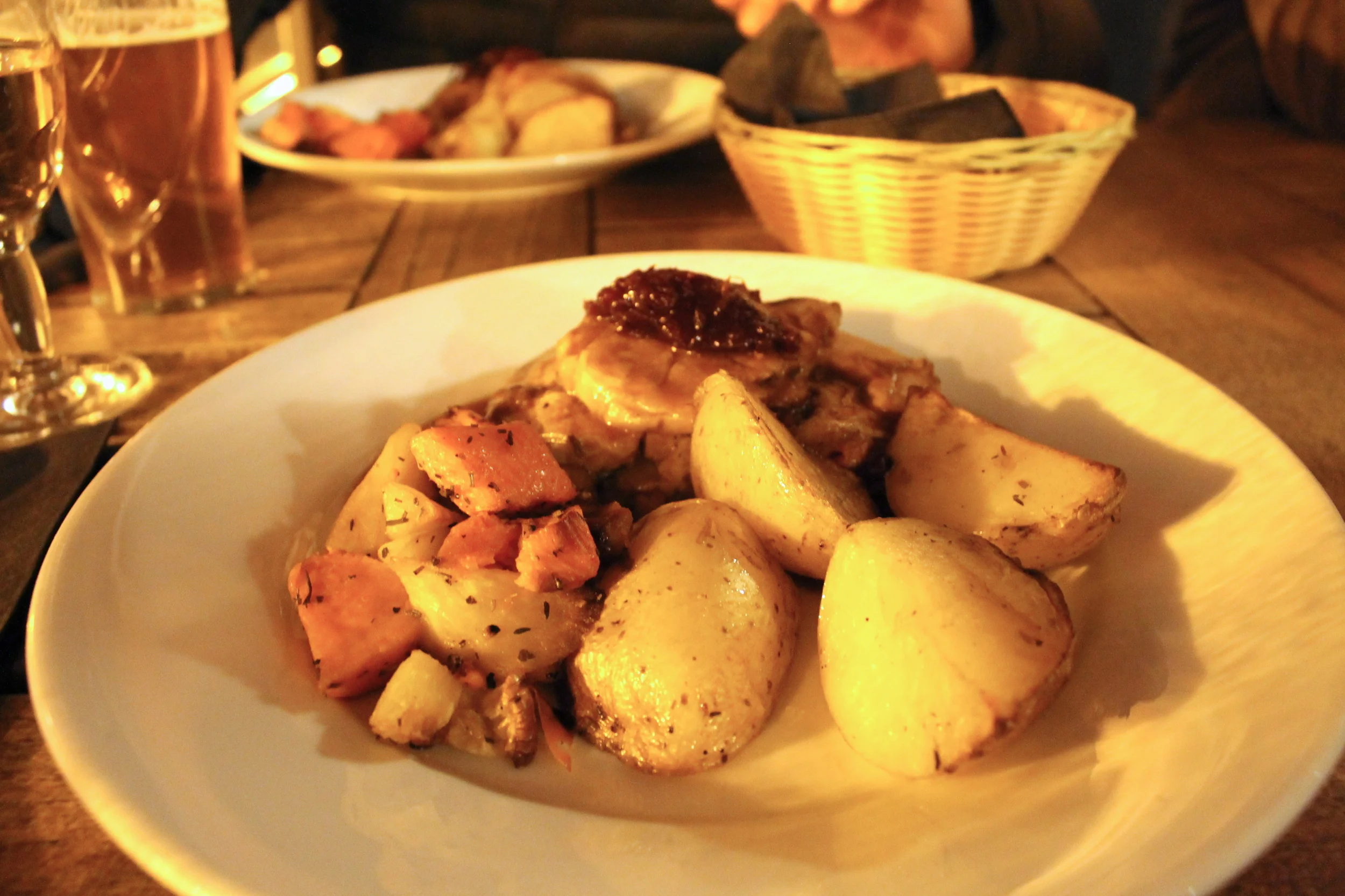 Finallllly it was (almost) 6:00, so we went back to Wayne's. We sat inside and could tell that Jackie was avoiding us, which could only mean one thing. "It's okay!" Mike and I reassured her as she timidly walked towards us hiding her face in her scarf. "I saw you guys round the corner up the street and I sprinted inside and started yelling at chef to cook chicken or anything for you. But he told me the dinner was off because no one called to reserve a plate. I've never been so embarrassed in my life!" We all laughed together, because it truly wasn't a big deal! We ordered a basket of chicken wings, which were kind of like a little tiny turkey leg, and in the meantime jumped on our phones to research and call other spots that may have a thanksgiving meal- and we found one!
