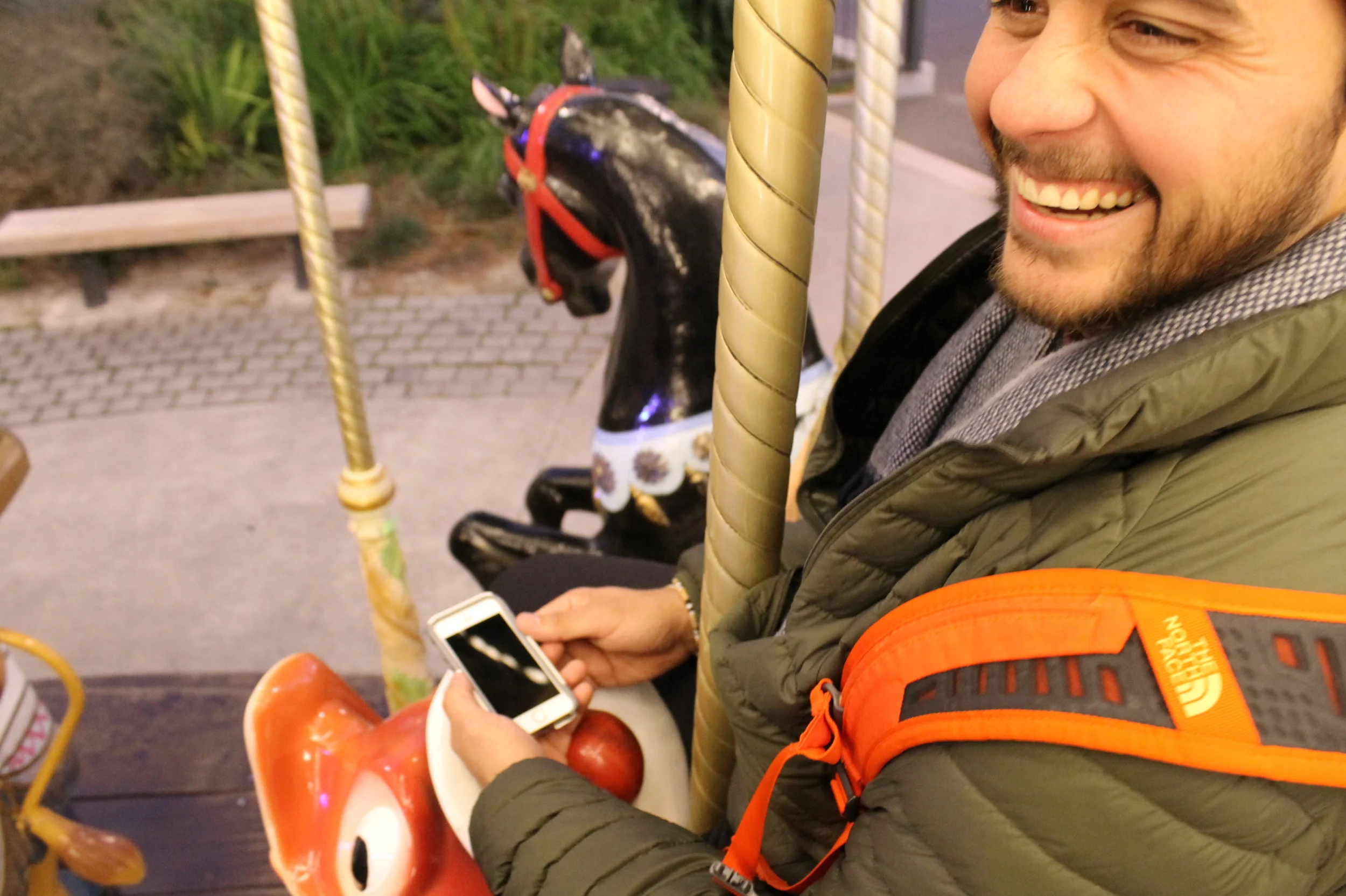 As the afternoon sun faded away, it was time to have a birthday beer at none other than our favorite spot, Wayne's! Have you figured out that we're creatures of habit yet? If it ain't broke don't fix it. We sat out on the patio next to the outdoor heater, enjoying the people watching and chatting. A while later, we left to catch the sunset on the beach and to walk along the boardwalk. As we walked, we found a rinky dink carousel which we decided to ride. I've seen carousels in so many cities and have never had a reason to jump on, so for Mike's birthday it was the perfect excuse! It was probably a 2 minute ride, but we giggled the whole time feeling so silly.