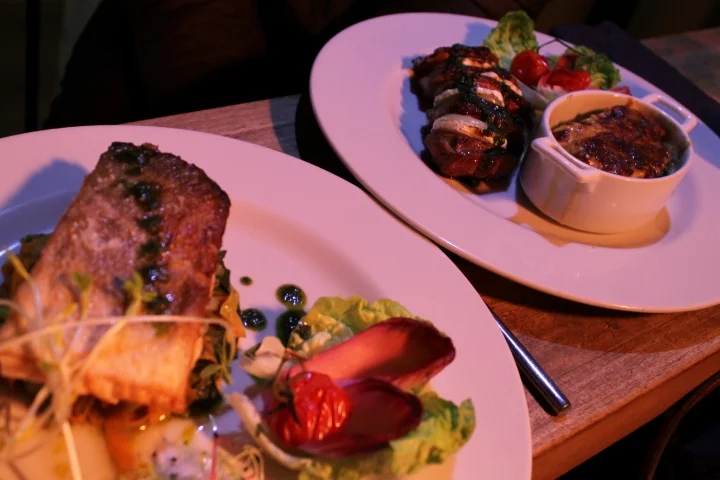 In need of dinner and a spot to camp out for the evening, we made our way through the cozy streets of the Old City until we found pub row- a handful of American and Irish style bars. Before arriving in Nice we had looked into spots that may be preparing a Thanksgiving menu, and Wayne's- the restaurant we decided to camp out at- was one that I saw online. We sat inside in the classic woody American-ish bar which had dozens of signed band posters and photos (The Beatles, ACDC, Snoop Dogg), ordered a burger to split, a drink, and chatted with our adorable waitress, Jackie. Born and raised Copenhagen, an ex English ballet dancer, and now a freelance Cyclist Magazine writer- we hit it off immediately. When we asked if they were doing a Thanksgiving menu tomorrow she enthusiastically said they were and that the whole spread would be starting around 1:30 tomorrow afternoon. We were psyched and so happy to have found a turkey dinner, especially at a place that we enjoyed hanging out at.